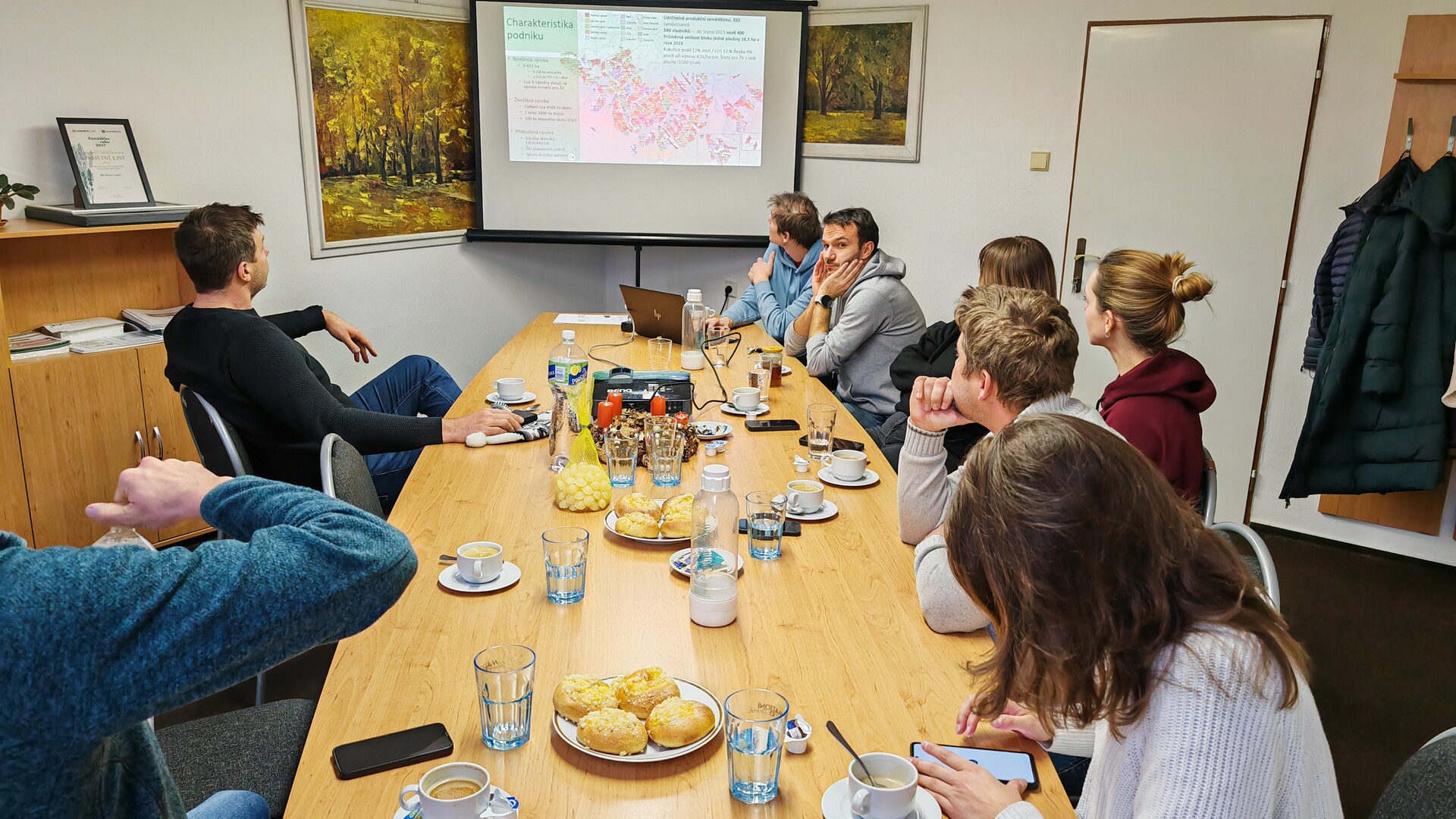 16.1.2025Na setkání Sdružení mladých manažerů Zemědělského svazu, které se konalo 13. - 14. prosince 2024, jsme navštívili dvě přední zemědělská družstva. První z nich bylo Zemědělské družstvo Sloupnice, kde nás osobně provázel předseda družstva Jaroslav Vaňous. Družstvo hospodaří na přibližně 3000 ha, zabývá se rostlinnou a živočišnou výrobou a provozuje vlastní minimlékárnu a řeznictví. Druhé družstvo, Zemědělské družstvo Dolní Újezd, se specializuje na pěstování široké škály plodin a chov skotu s využitím nejmodernějších chovatelských postupů. Hlavní agronom ZD Dolní Újezd a člen Sdružení mladých manažerů Josef Čejka, jeden z nejlepších odborníků v ČR na precizní zemědělství, nám prostřednictvím prezentací přiblížil, jak tato technologie napomáhá zvyšovat efektivitu a kvalitu produkce.